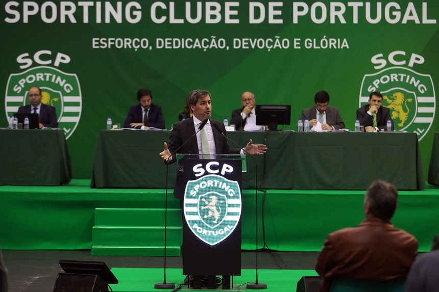 Imagens recolhidas pelo jornal "Record" da Assembleia-Geral dos "leões", nas quais o presidente do Sporting surge a afirmar que a extinção do Conselho Leonino (CL), que é uma das alterações estatutárias que pretende introduzir, fazia parte do programa que apresentou aos sócios e que foi votado por 90 por cento dos sócios na mais concorrida eleição da história do clube.