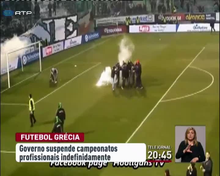 O campeonato grego está suspenso. Tudo por causa dos incidentes entre o Panathinaikos e o Olympiakos envolvendo o treinador português Vítor Pereira. Depois da invasão do relvado, os presidentes dos dois clubes reuniram-se e agrediram-se mutuamente.