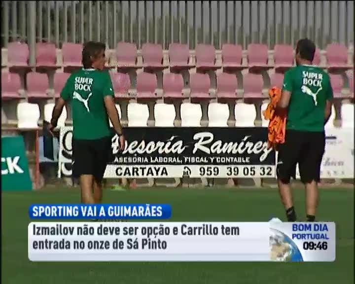 Marat Izmailov deve ficar fora no primeiro jogo do Sporting, amanhã em Guimarães. O médio ainda não esteve em campo, nesta pré-época. O jogador está em rota de colisão com o clube, e reclama verbas em dívida. Já Carrillo deve entrar no 11 de Sá Pinto. A meio da semana, o extremo jogou pela seleção do Peru, mas apesar da longa viagem, deve ser aposta do treinador.