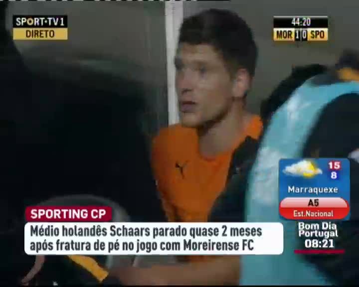 O jogo com o Moreirense provocou uma baixa no plantel do Sporting, Schaars vai ter de parar entre 10 a 12 semanas. O médio holandês fez uma fratura no pé direito e teve de ser substituído. Vai ser operado nos próximos dias e só deverá regressar aos relvados em fevereiro.