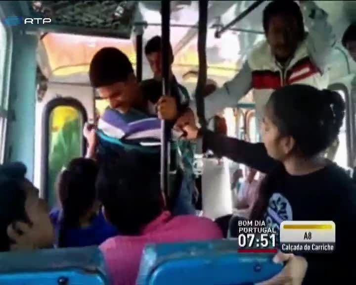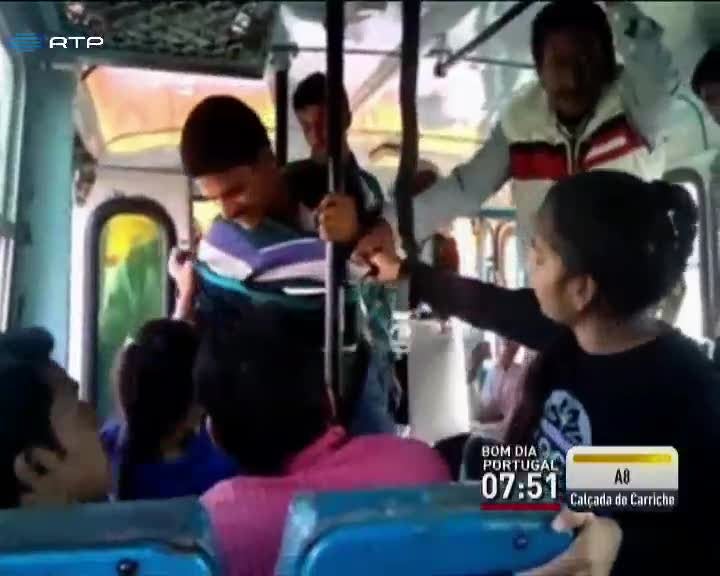 Na India, duas jovens reagiram a soco a um ataque de cariz sexual dentro de um autocarro. A polícia prendeu os três atacantes.