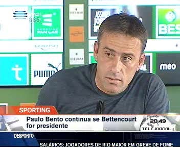 A confirmação do treinadorleonino surgiu na conferência de imprensa de antevisão do jogo com o Nacionalda Madeira. Paulo Bento vai continuar no comando técnico do Sporting caso JoséEduardo Bettencourt vença as eleições de 5 de Junho.
