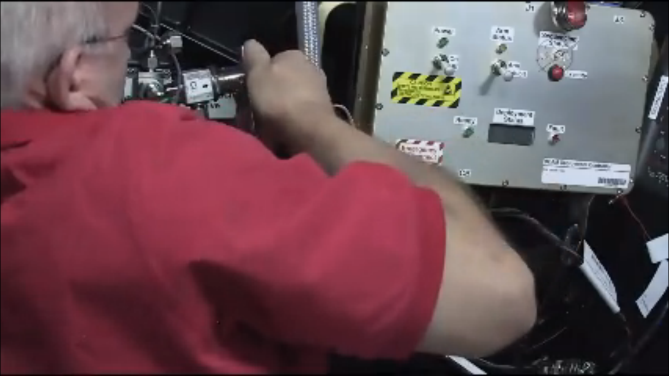 Quem executou sempre o controlo de enchimento foi o astronauta americano Jeff Williams aqui na imagem. Créditos: NASA TV
