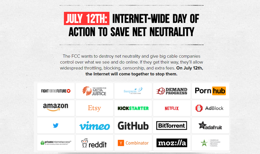 Segundo a petição online ”July 12th: internet-wide day of action to save net neutrality”, a FCC quer destruir a neutralidade existente e dar a grandes empresas de cabo o controlo sobre o que vemos e fazemos na internet.