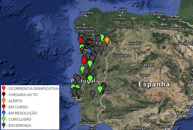 Um site informativo atualizado automaticamente de dez em dez minutos com recurso aos dados da própria Autoridade Nacional de Proteção Civil (ANPC).