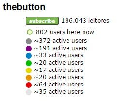 Muito embora a ideia principal seja não deixar que o contador chegue ao seu término, este “jogo” simples também tem uma outra funcionalidade. Quando um redditor (nome dos utilizadores) carrega no botão, o seu perfil fica marcado com uma cor, dependendo sempre do segundo apresentado no contador.