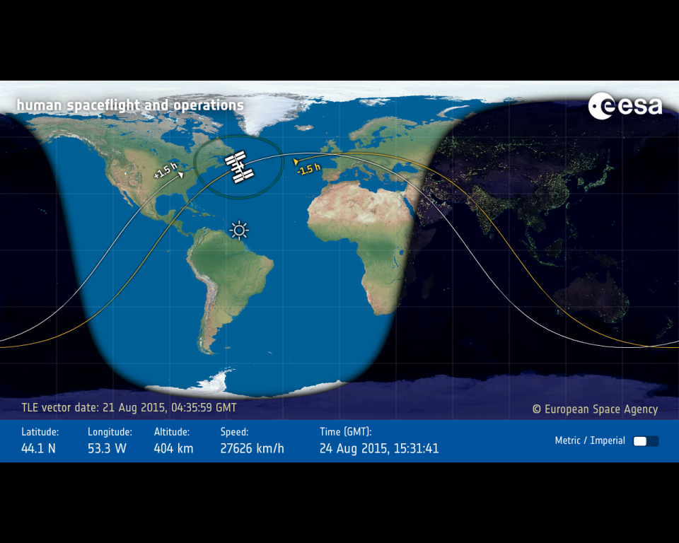 Neste site da NASA também é possível seguir, em tempo real, a geolocalização da ISS, através de um mapa da Agencia Espacial Europeia (ESA), permitindo assim identificar o local da imagem que se recebe do espaço.