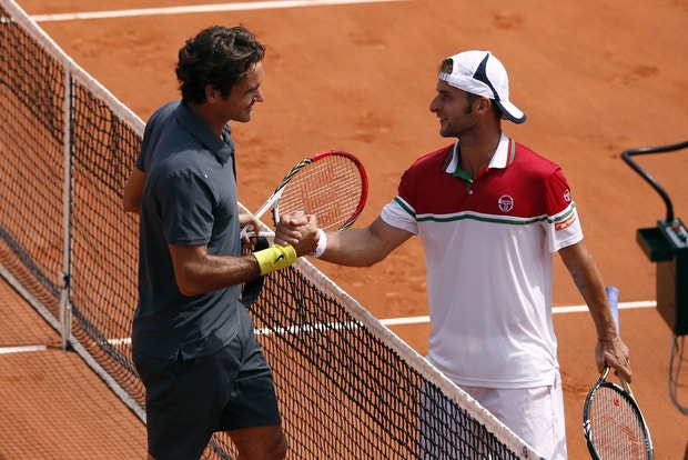 O tenista suíço Roger Federer tornou-se hoje no jogador com mais vitórias em encontros de torneios do "Grand Slam", ao qualificar-se para a terceira ronda de Roland Garros. Federer bateu o romeno Adrian Ungur em quatro "sets", pelos parciais de 6-3, 6-2, 6-7 (6-8) e 6-3.